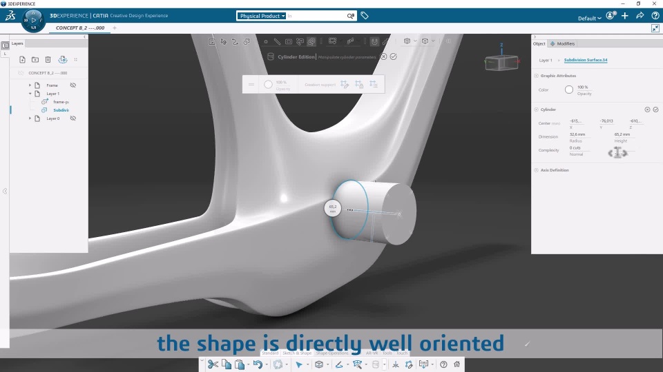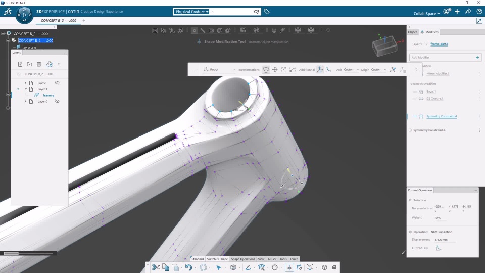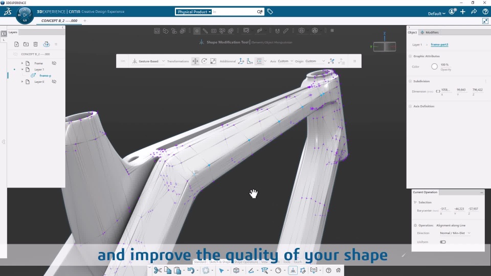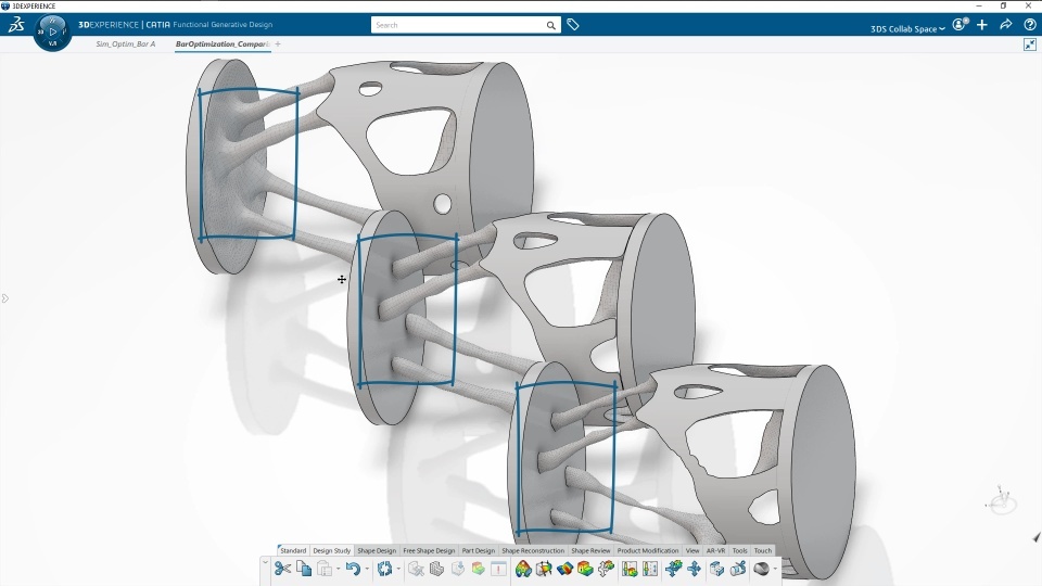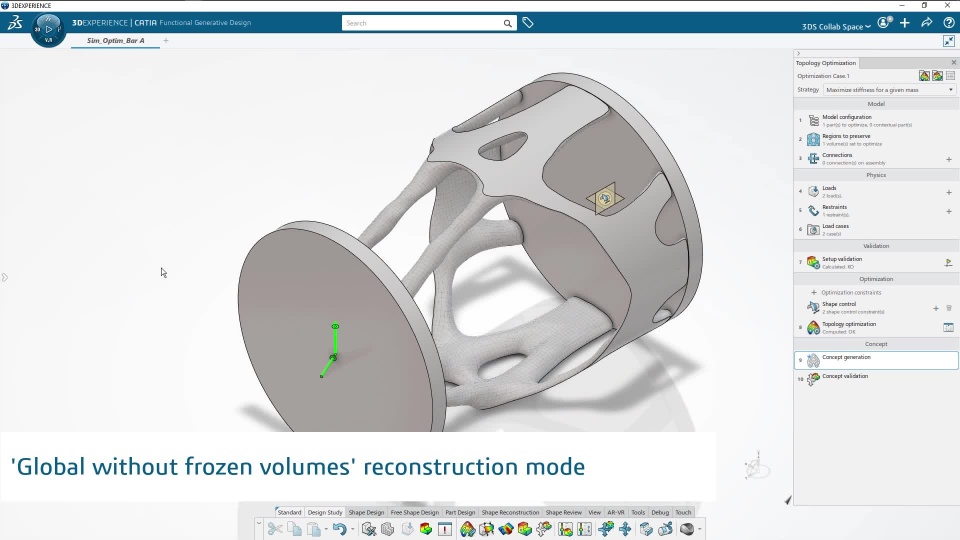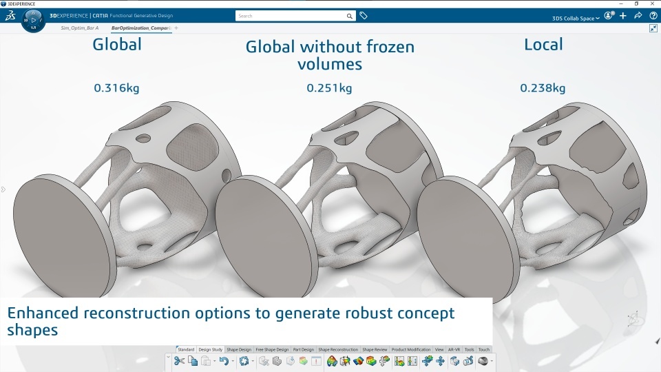 Produce automatically lighter parts or assemblies, thanks to an enhanced Generate Shape command for topology optimization on solids adding less material around frozen areas |
