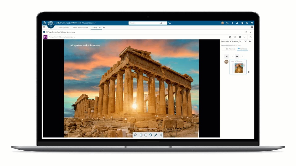 Share comments and annotation made on images- On top of collaborating and sharing comments on documents and 3D content, you can now also do so for images whatever the source: 3DDrive, 3DSwym or 3DSpace.