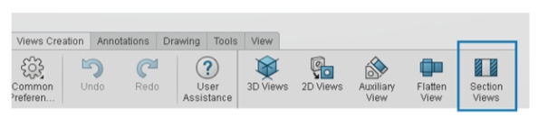 You can create a section view, which displays the product cut by a plane, showing the internal structure. Benefits: 3D section views illustrate internal structures clearly. For more information, see Creating a Section View. |