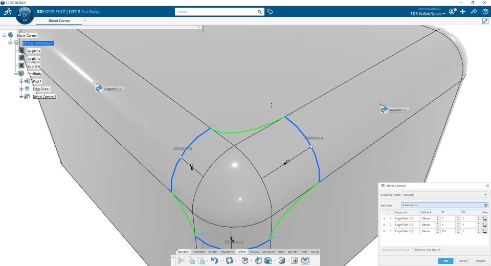 You can now add xDesign features in an imported HomeByMe model by using HomeByMe reference entities such as planar surfaces and vertices. The reference features that you use to create designing features are known as isolated features. Note the supporting features: