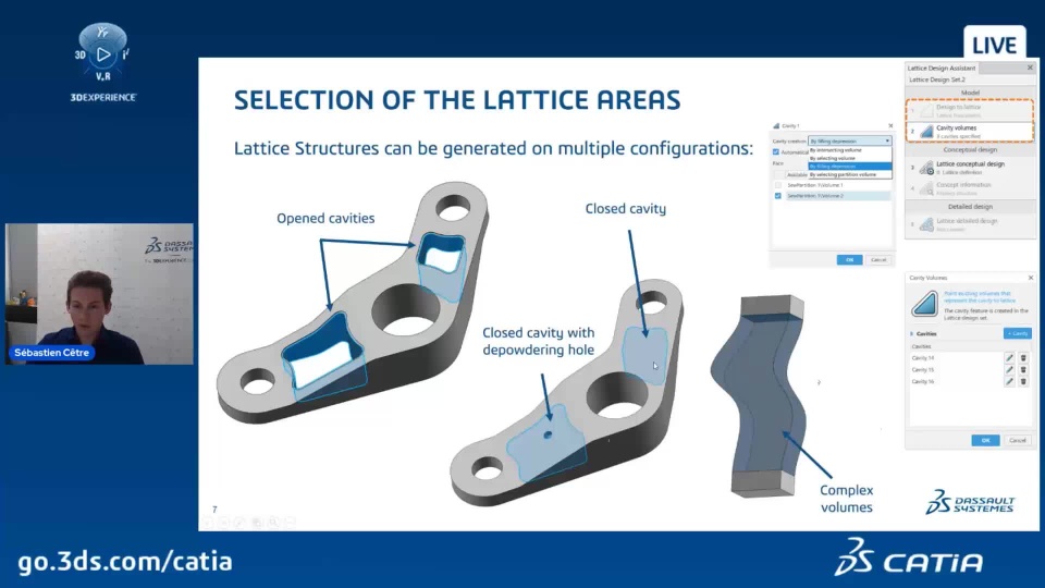 A Lattice is a simple shape pattern replicated in different directions. A designer can fill certain regions of the design with a Lattice to improve the performance of the design. Lattice Designer Role is available with Engineering Exper role (U2D) Lattice Design app will enable the adoption of lattice structure in high performance parts, providing conceptual and detailed 3D Lattice modeling capacities seamlessly integrated with structural validation, and outputting 3D Printers and readable formats. The Lattice Design Assistant in the app guides you through the process of the lattice design. It helps you navigate through all different steps from defining the body to lattice, the cavities, launching lattice conceptual design, and validating the design. Please view DETAILED WEBINAR below for more information: |