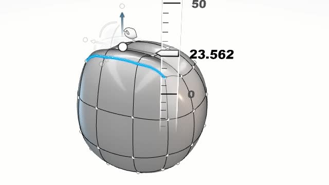 If you crease one or more edges of a subdivision object, the edges remain selected in the 3D area following the manipulation. Benefits: It is possible to work more efficiently on a specific set of entities by not having to select them again between two manipulations. For more information, see Creasing Edges on a Subdivision Face. |