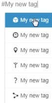 - Type # followed by your new tag text, and select a tag category from the list.