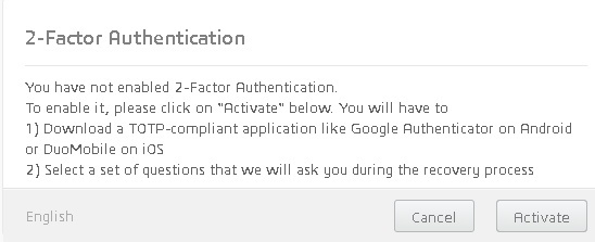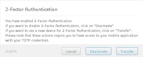 It is recommended to enable or disable 2 factor authentication with due care. You should only activate it if you know how to disable it.