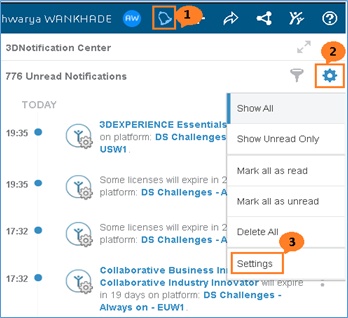 You can enable notifications on various events happening on the 3DEXPERIENCE Platform: For example
