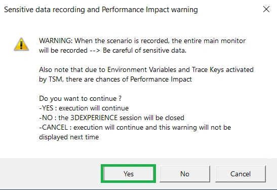 Click Yes in the “Sensitive data recording and Performance Impact warning” window.