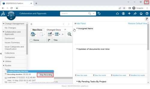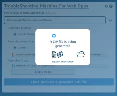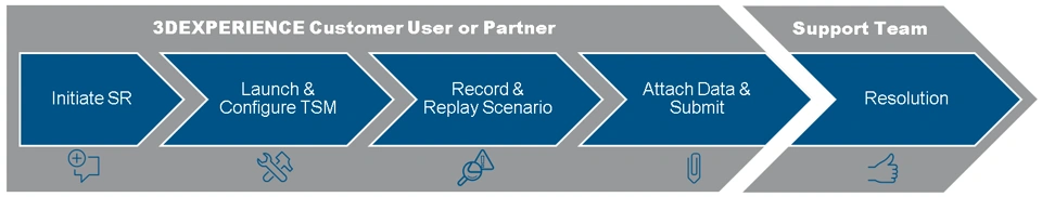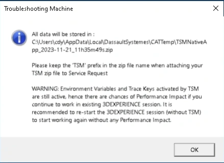 TSM is the quick & easy way to capture this information (a screen recording of the issue, common debugging logs, traces, and system information) of a 3DEXPERIENCE platform scenario in a single file, and attach it to a Service Request.