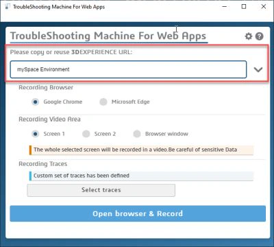 - Click “Open browser & Record”. The TSM launches a dedicated independent browser.