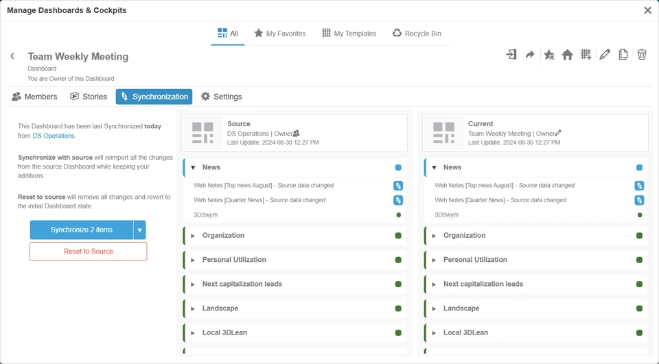 3DDashboard further extends the FD03 Dashboard Synchronization feature by adding Selective Change.