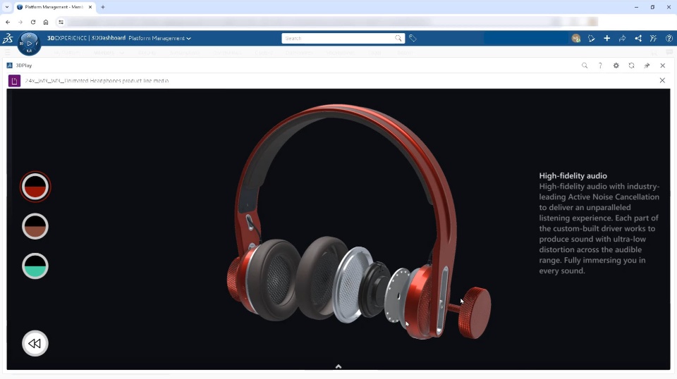 Utilize the Commercial Twin to create interactive experiences showcasing color & material variants. Publish them to the web to enable end consumers to customize and choose their favorite product in an interactive online experience.