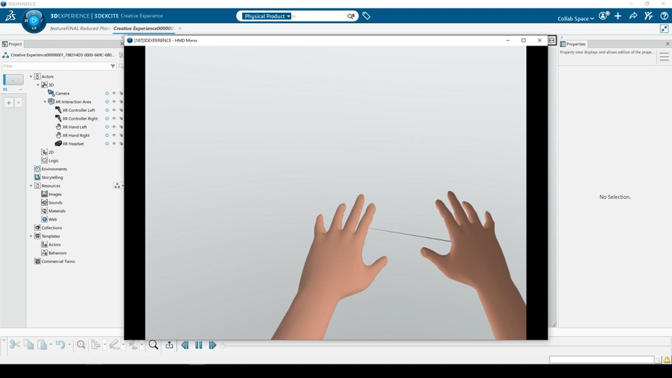 The enhancements in the Marketing Experience Creator Role enable users to experience life-size, up-to-date and scientifically accurate Virtual Twins in high-end Mixed Reality devices like Apple Vision Pro (3DLive App required). Additionally virtual hand models and tracking inside immersive experiences enables to explore the virtual twin in the most possible natural way. The publication process of Creative Experience to Web and Sense Experiences offers several enhancements to the consistency and user experience like the support of Simulation Results and a direct link to xMedia, which fosters the review process and deployment into external customer websites (Marketing Innovator required).