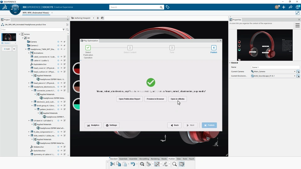 4) Physics Simulation assets produced from 3DX or PowerBy SIMULIA apps are now supported in the publication process to Web and Sense Experiences