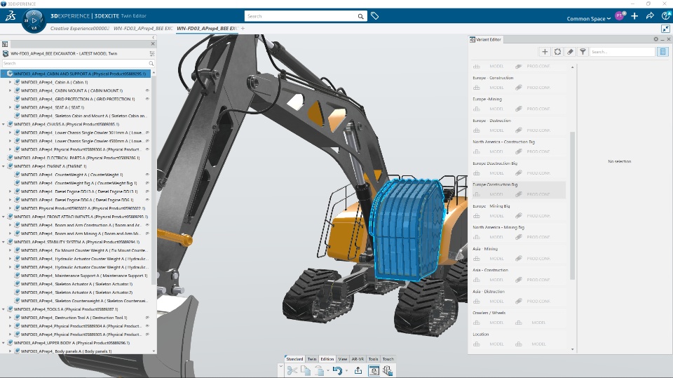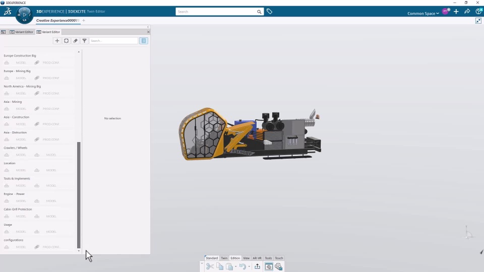- The Twin Editor workbench enables users to enrich the ENOVIA configuration by combining variants/ options to new configuration packages