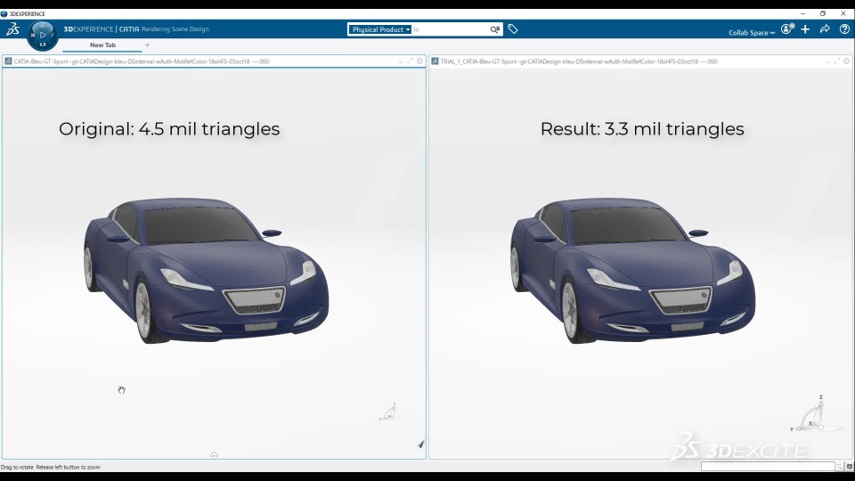 Users can now access the Product Processor and Product Processor Monitor directly from the tool bar. One-click access from your Rendering Scene Design application to model optimization shortens time and reduces errors during the preparation of the 3DEXPERIENCE Twin for Marketing (commercial twin).