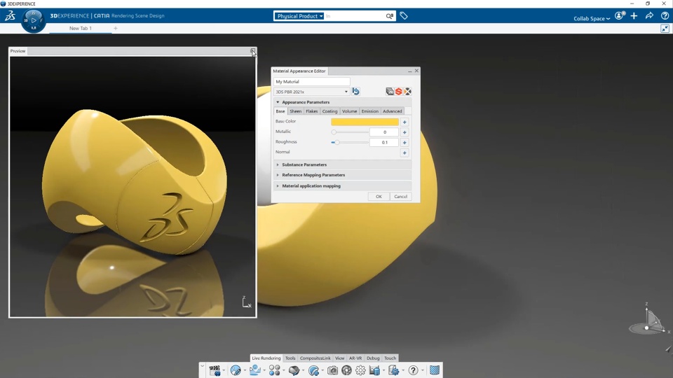 The improved material workflow simplifies the creation and editing of materials. A new intuitive user interface, a flexible appearance preview and enhanced edit functions enable users to deliver the 3DEXPERIENCE Twin faster and with higher precision.