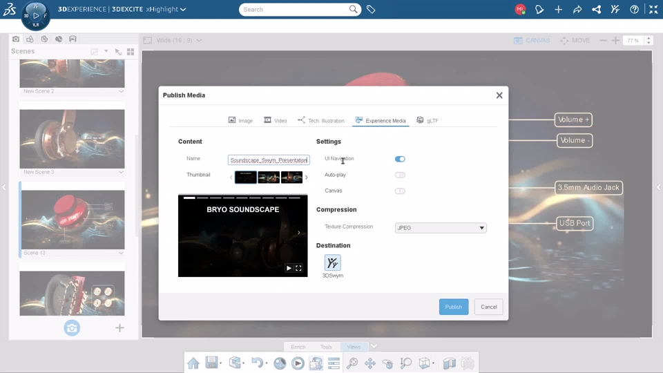 - Users of 3DEXPERIENCE can view published xHighlight presentations on 3DSwym or in Conversations without requiring an xHighlight license for authoring.