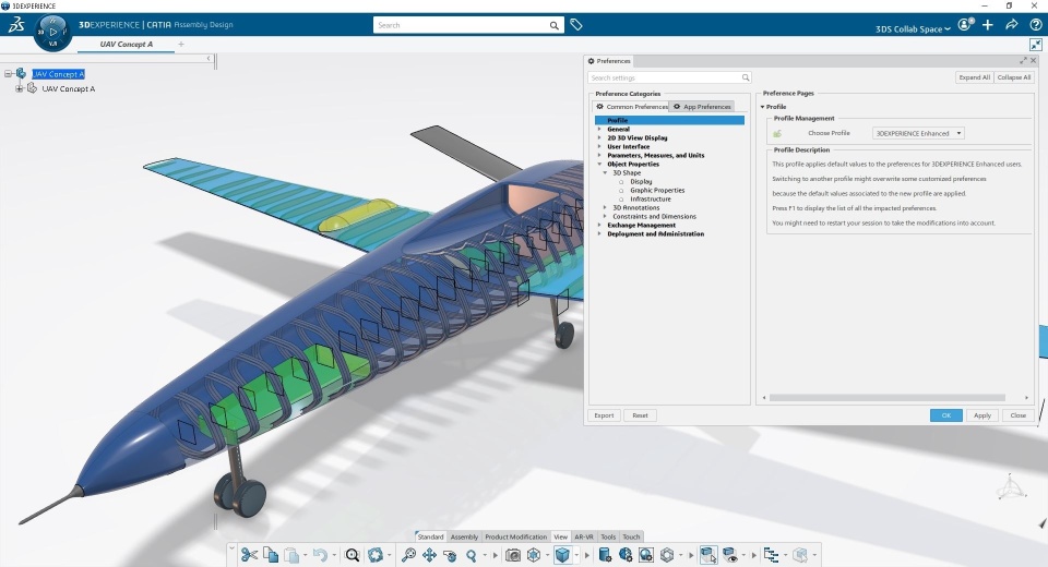 - Access easily the most efficient preferences in CATIA 3DEXPERIENCE thanks to a new settings profile.