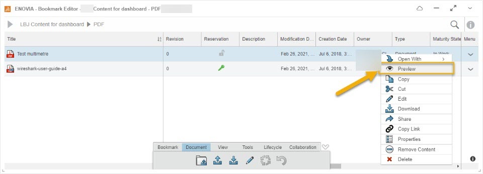 You can also opt to display the preview of a document from the context menu.