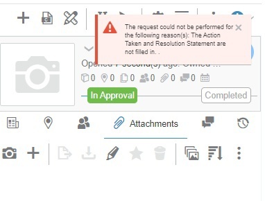 In addition, the Resolution Date, Action Taken, and Resolution Statement fields must be completed before you can promote the issue to the Completed state.