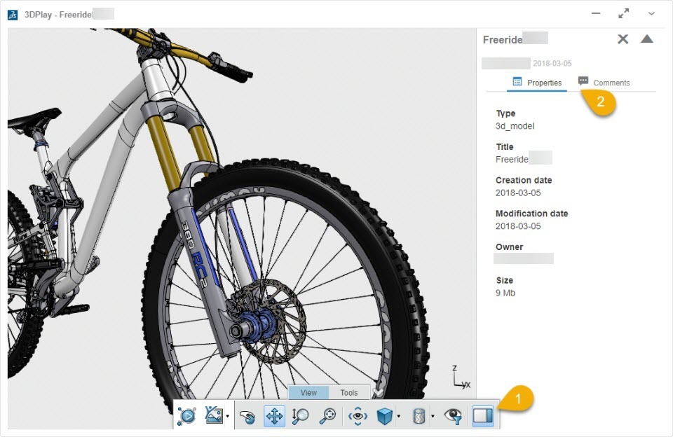 Benefits: The side panel offers easy navigation and access to information on PLM attributes and simulation experience content information. In addition, the side panel facilitates sharing by providing a place to create comments and provide feedback on the Physics simulation or finite element model that you load.
