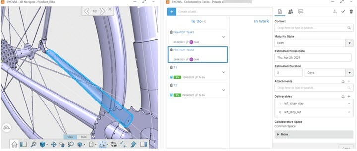 Benefits: Task deliverables for a 3D product from Collaborative Tasks are highlighted and focused in 3DNavigate.