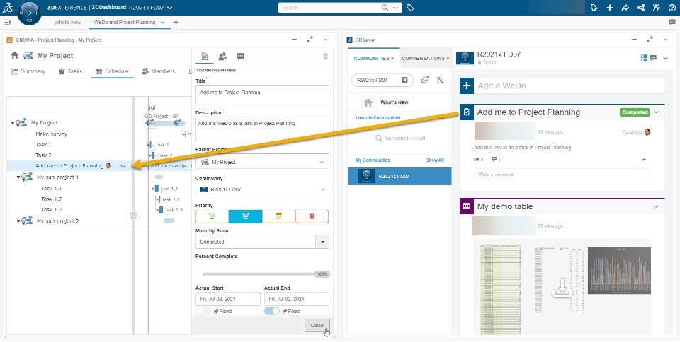 You now have the possibility to add WeDos to a project in ENOVIA Project Planning.
