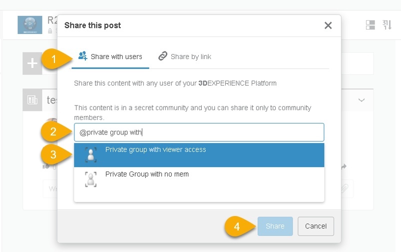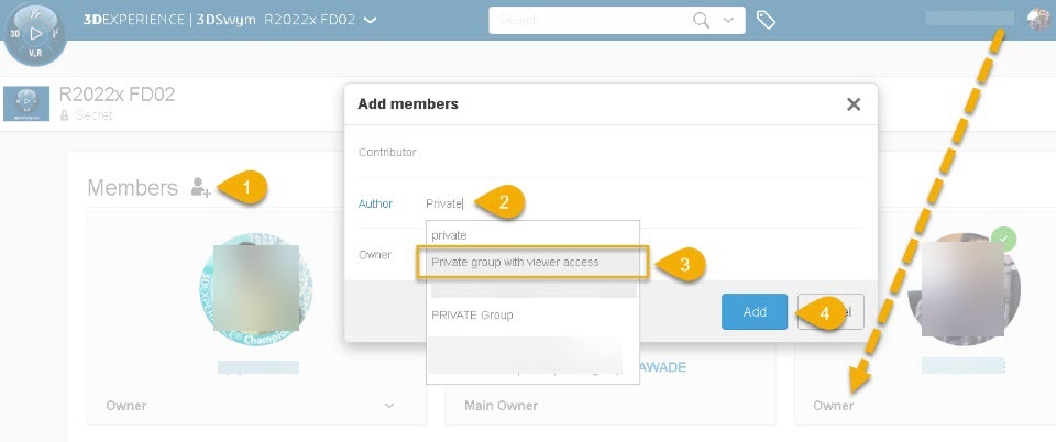 Private user groups have been introduced with R2022x FD01, but the integration with 3DSwym was not yet available. Private group visibility is restrained to selected users. Only platform administrators, group viewers, owners and managers can view and manage this kind of group.