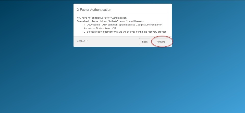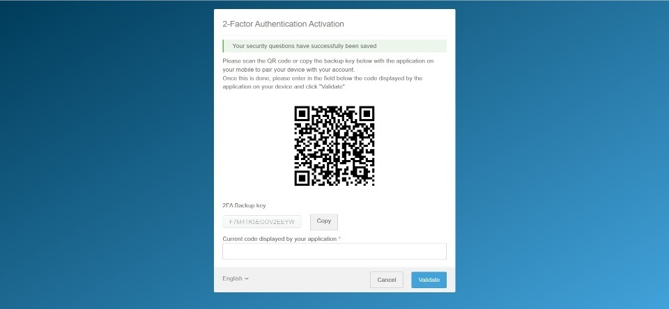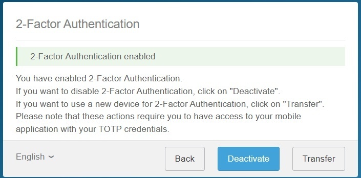 - You’re done. The 2-Factor Authentication is activated