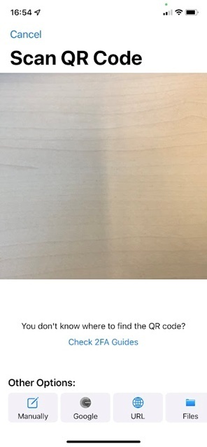 Step6: Download on your mobile device an Authentication App, open it, follow the steps until you got the QR code scan ready