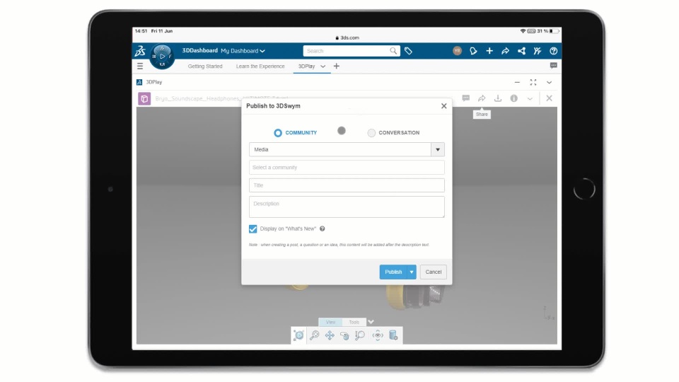 The 3DPlay widget improves the user experience of the widget top bar to keep it unified in all apps of the 3DEXPERIENCE platform.