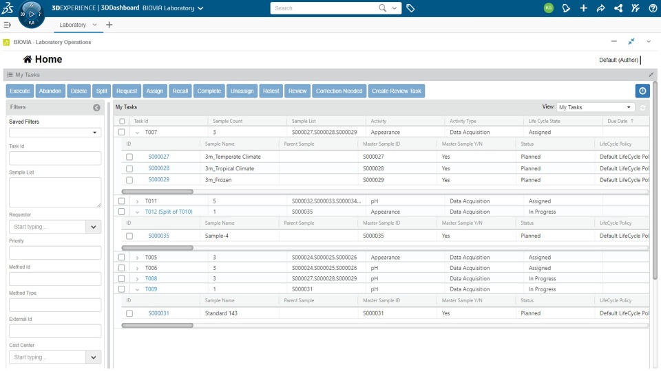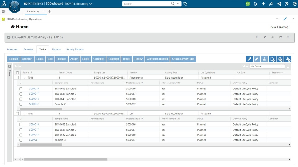 The Laboratory Technician can create task plans, execute tasks and review results.
