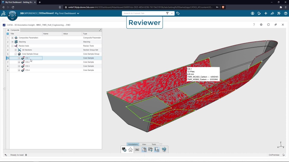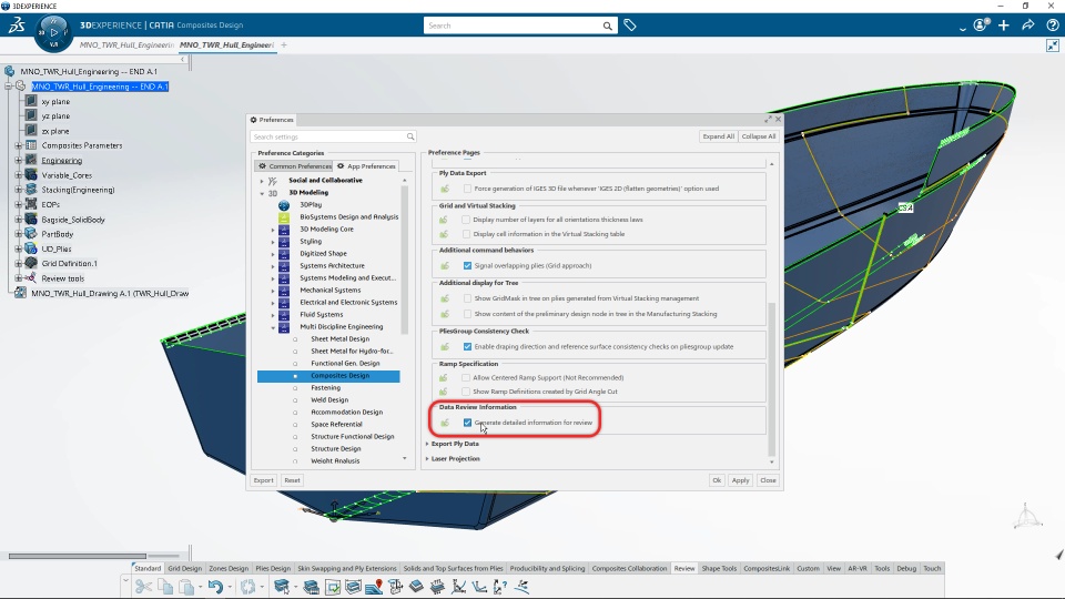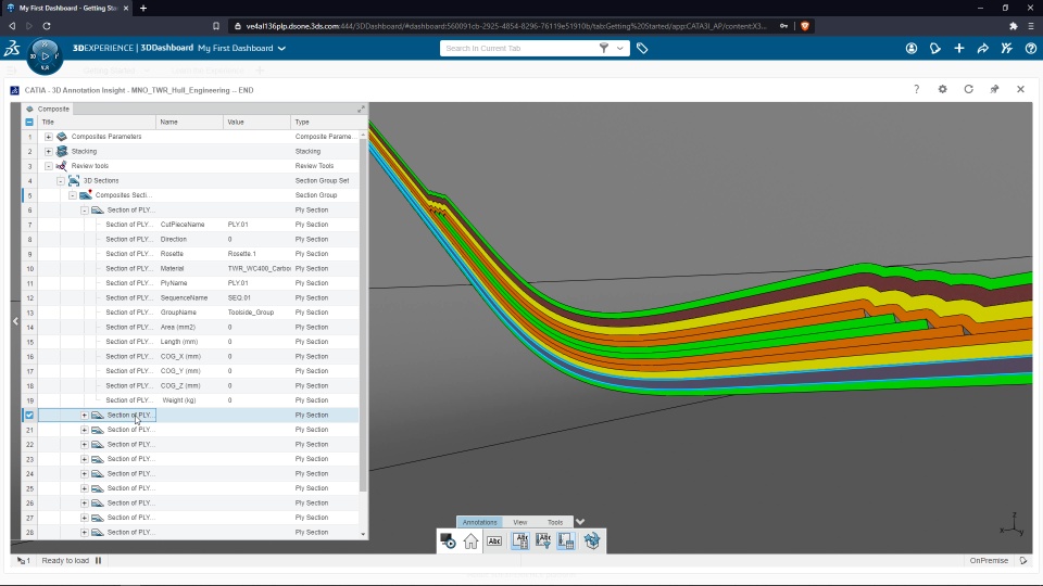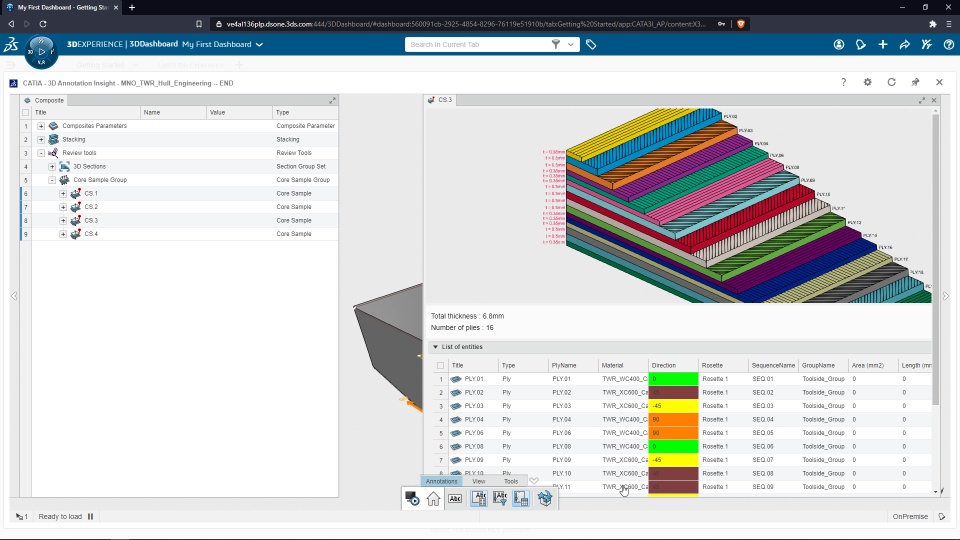 1. Ability to visualize and review composites data at all stage of the engineering process (design and manufacturing data) in the 3D Annotation Insight Widget