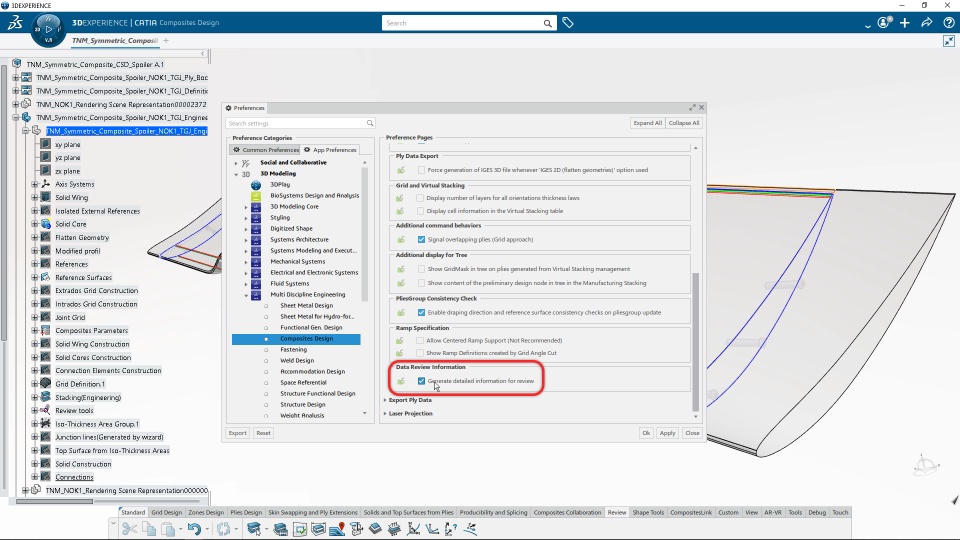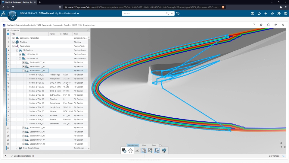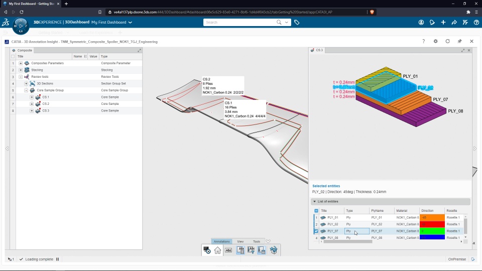 1. Ability to visualize and review composites data at all stage of the engineering process (design and manufacturing data) in the 3D Annotation Insight Widget