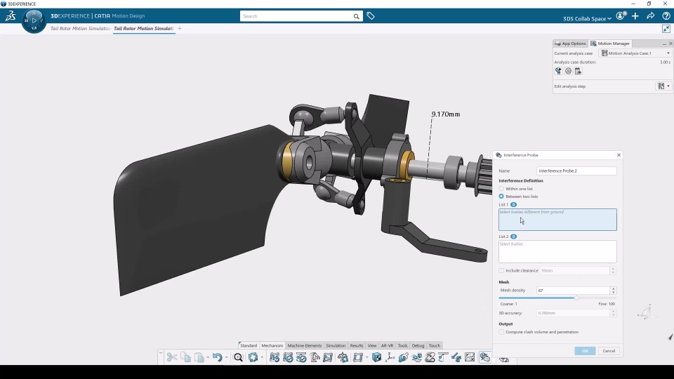 Minimum distance can be displayed the kinematics player, in order to quickly assess this probe, during mechanism definition