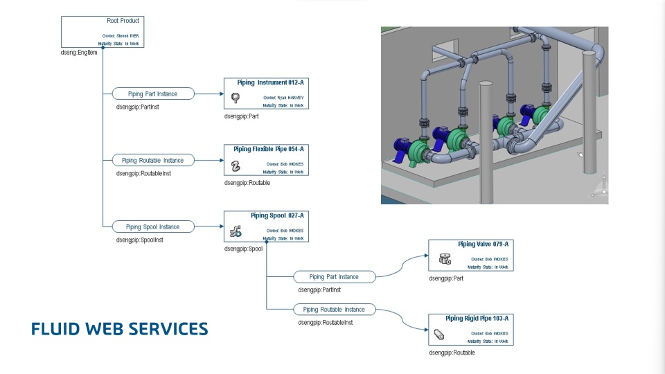 Enable integration with external tools using web-services on fluidic objects (equipment, routables, spools, etc.) by exposing all corpus classes, attributes and methods for accessing them and for modifying the authorized attributes.