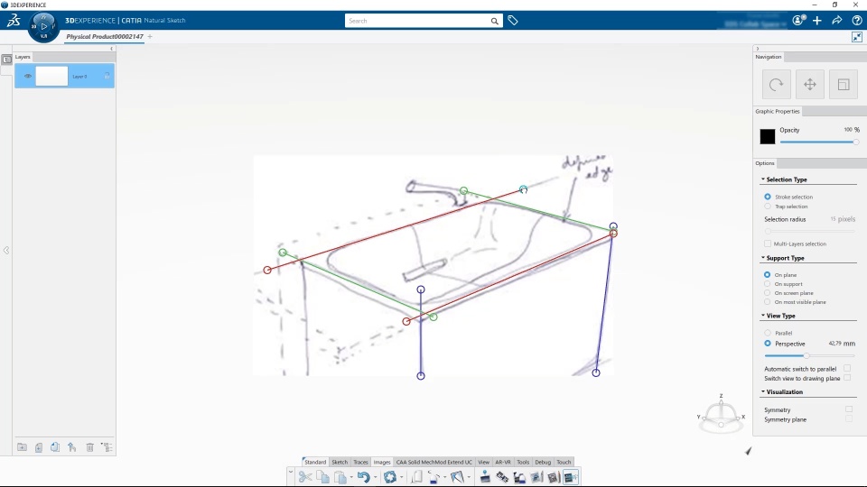 Accelerate and facilitate the creation of 3D from a 2D styling Sketch with a New command to retrieve in 3D the perspective view of the sketch