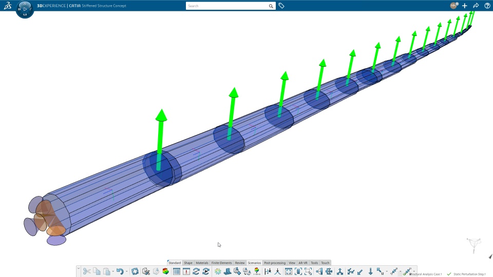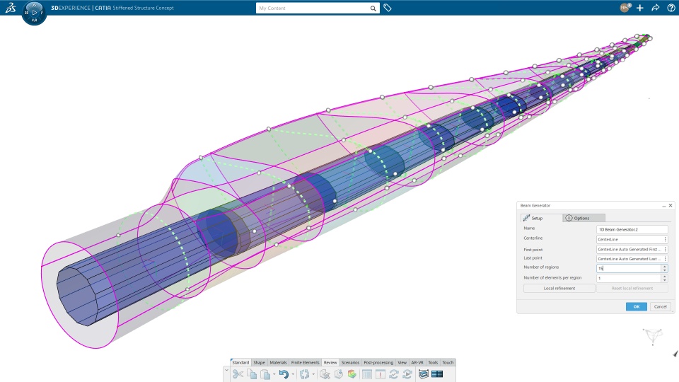 Video introducing the new Stiffened Structures Concept Design Engineer role Quick Grid command: The wing panel is divided into regions with easy-to-use on the fly geometry creation