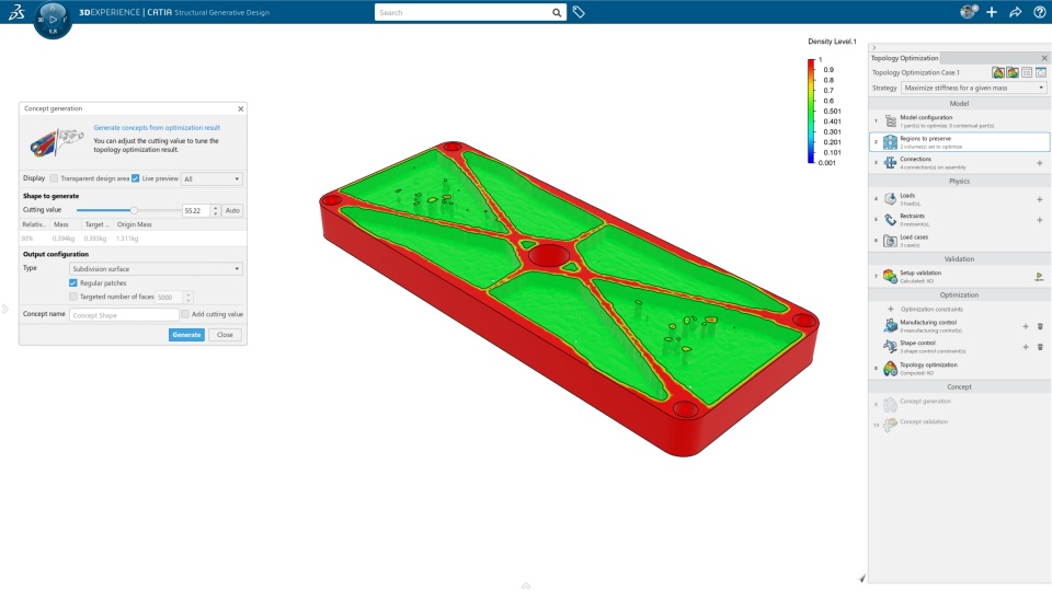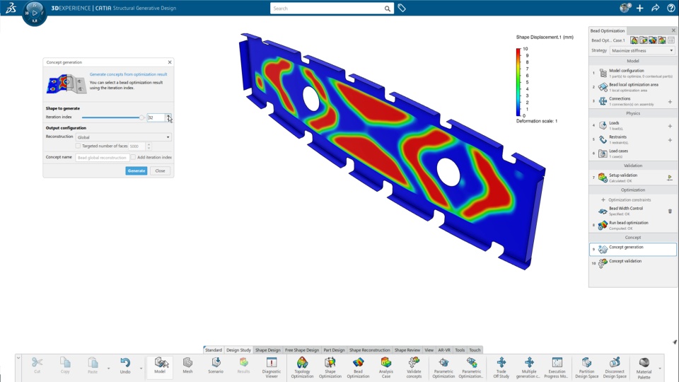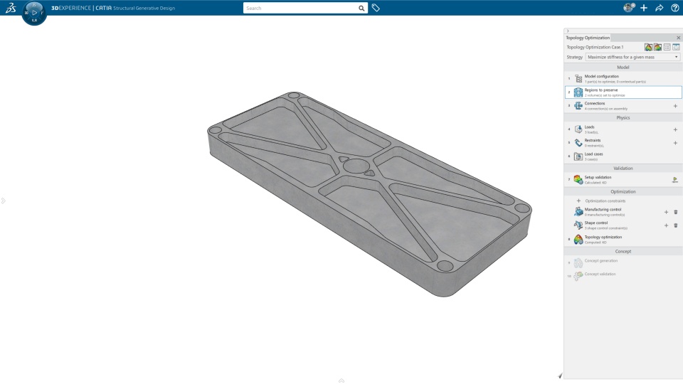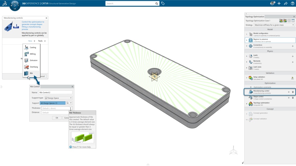 Video illustrating all the new improvements added in the Structural Generative Design role with the integration of Bead and Surface topology optimization on Thin Parts and a new Rib manufacturing constraint.