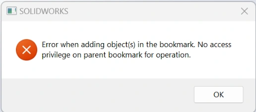 Error when adding object(s) in the bookmark. No access privilege on parent bookmark for operation.