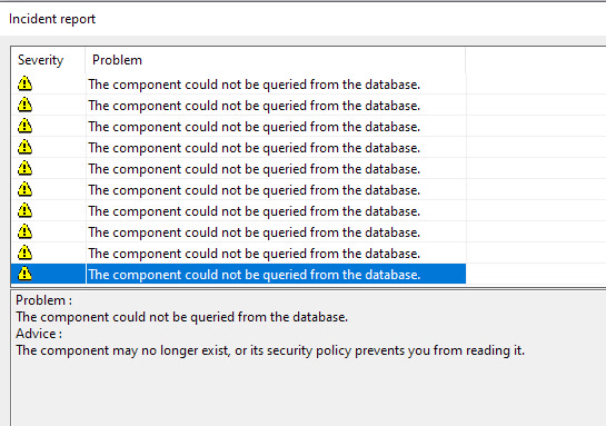 | Probable Cause: - Concurrent modification/deletion of components or inconsistencies between relations.