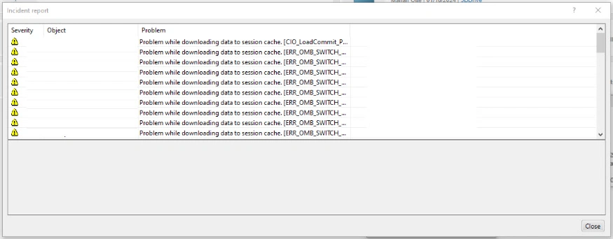 Unable to load object: Incident Report [Problem while downloading data to session cache]