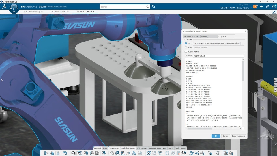 A new translator for SIASUN Robot controllers expands the Robotics solution coverage with offline programming support of the latest generation of SIASUN robots