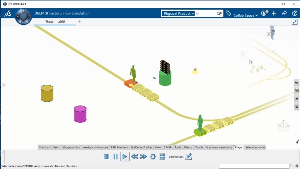 Improve the simulation model and behavior by simulating AGV trains. This simulation increases the efficiency of the transfer operations with safety.