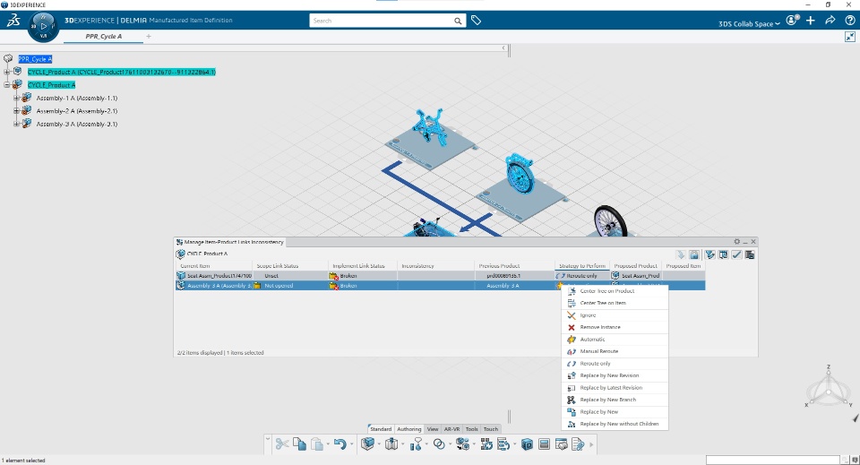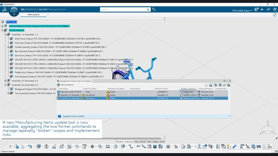 Former tools to manage inconsistent scopes and inconsistent implement links between Products and Manufacturing Items are now merged in one single tool to fully manage all Product changes impacts on Manufacturing Items structure
