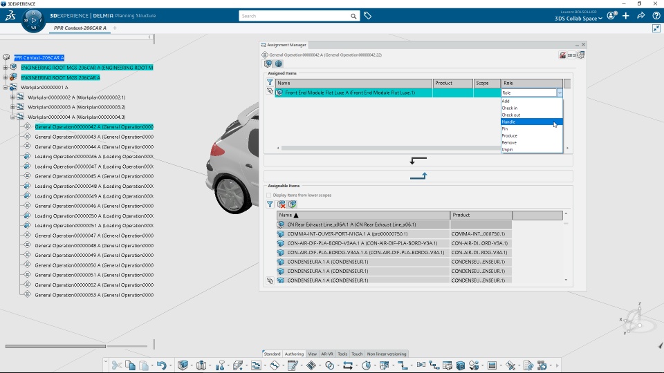 When assigning Manufacturing Items to Operations, it is now possible to specify a role to reflect the purpose of this association, such as : add, remove, handle, etc.