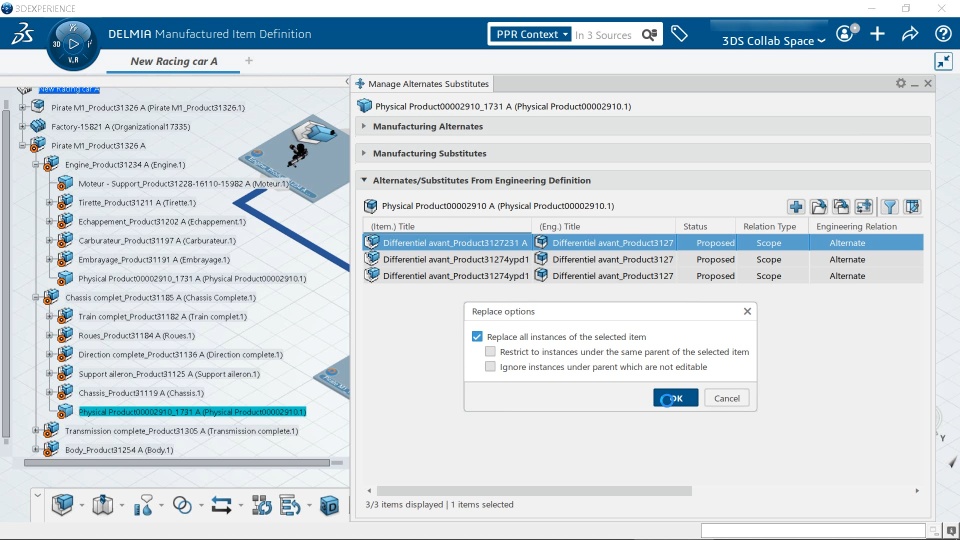 This new Replace by Alternate/Substitute command, might be especially useful during their qualification process, to perform some manufacturing analysis and approve its usage or not.