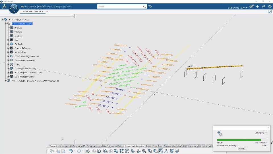 New capacity to leverage specific composite design information ( such as plies stacking information) within the Manufacturing Bill of Materials and Process definition Within the CATIA Composites Manufacturing Preparation application, a Design Engineer can generate a product structure to expose necessary information for Manufacturing purpose All exposed composite design specification stored within the Product structure can be leveraged during the Manufacturing BOM definition Composite design specifications are also useful during manufacturing process definition to properly define the assembly sequence