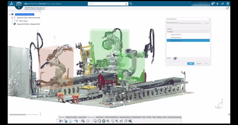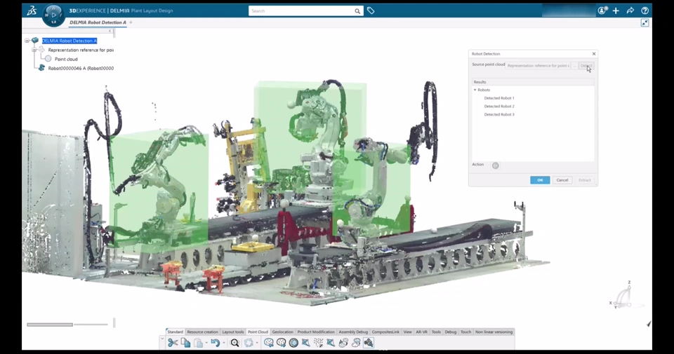 - “POWERED BY AI - Streamline production processes by automatically identifying robot objects from factory scans and extracting them into separate robot equipment point clouds. This AI functionality reduces manual intervention, accelerates workflow, and minimizes the risk of errors associated with manual data extraction.”