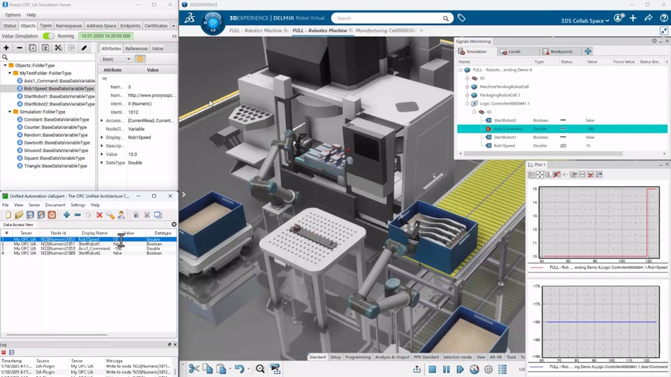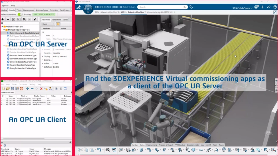 Improve Virtual Commissioning scenarios by connecting external systems with the OPC-UA standard offering a secured and fast connectivity.