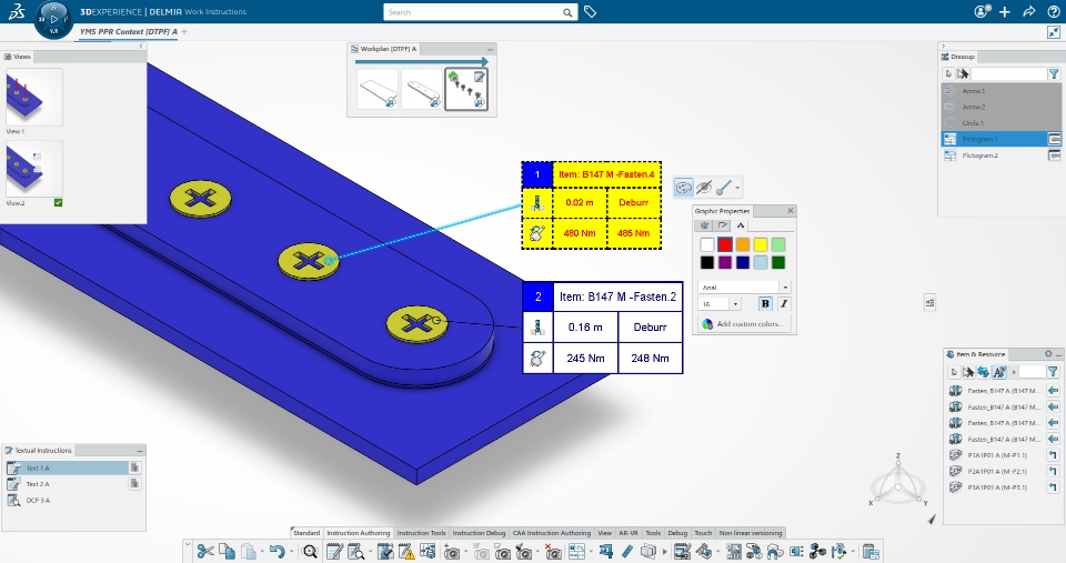 Enriched published content for configured process & 3D work instructions by supporting display of FTAs (Functional Tolerances & Annotations) associated with Requirements